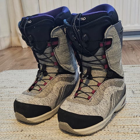 Hyväkuntoiset lumilautakengät, tukevalla TLS-kiristyksellä. Koko 38 /24,5. Siistit käytetyt laatukengät. Pari pientä kosmeettista jälkeä ulkopuolella, ei mitään käyttöön vaikuttavaa moitetta.