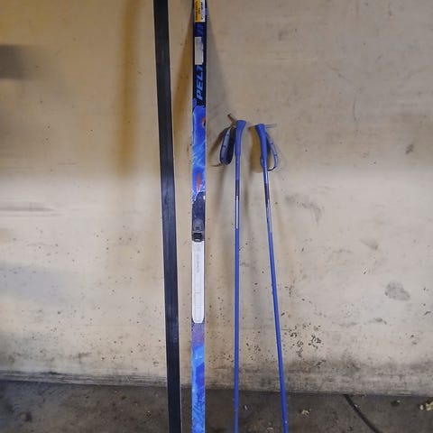 Lasten 130 cm peltonen sukset ja sauvat. Nouto.