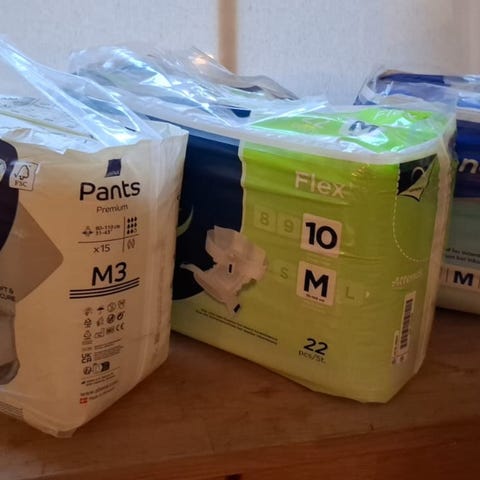 Attends Pull-Ons vaippoja koossa L, yhteensä 205kpl. Koko pompsi samalle hakijalle, pikainen nouto Haukiputaan keskustasta.