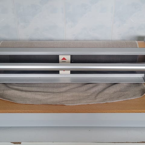 Vanha mutta hyväkuntoinen mankeli. Hammasrattaat metallia, ei muovia.