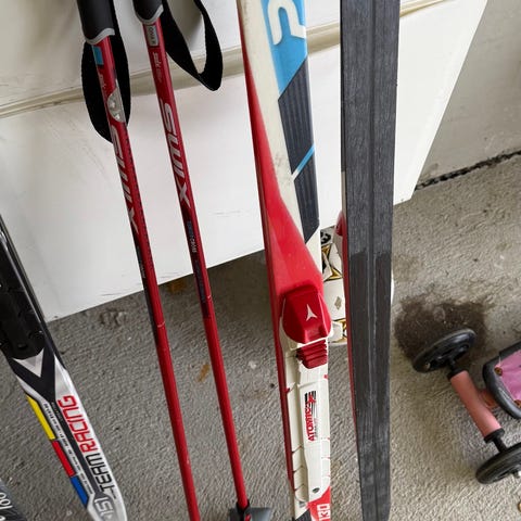Kuvasta poiketen sauvat ei kuulu mukaan. Voin halutessa laittaa 75cm sauvat mukaan. Kunto tyydyttävä mutta eiköhän näillä vielä tämän talven harjoittele. (Pohjat naarmuiset, katso suksien takaosa kuvasta)