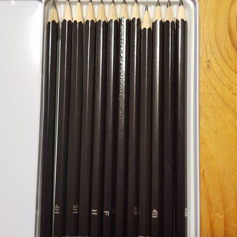 Sekalainen setti maalaus- ja piirustustarvikkeita.