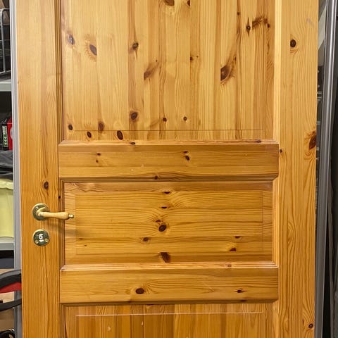 Ovi on muutoin hyvässä kunnossa, mutta kahvan ympärillä tummentumaa, kuten kuvasta näkee.
