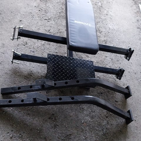 Saa kahdella pultilla kahteen osaan, joten mahtuu perus farmariauton peräkonttiin penkit kaatamalla.