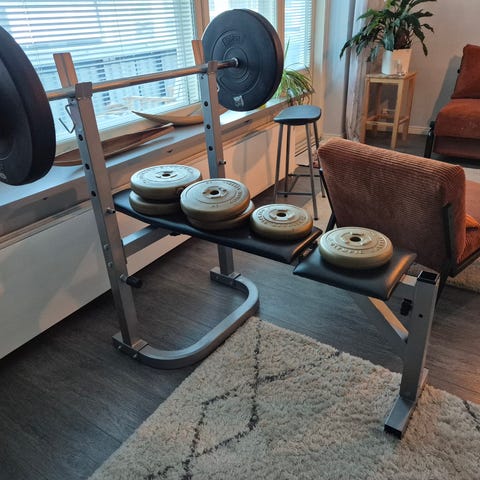 Itse tehty punnerruspenkki, penkin korkeus maasta 53cm, tankotelineen ulkomitta 109cm.