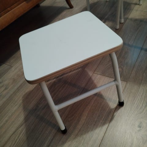 Myyn kaksi metallijalkaisen jakkaraa. Vanerinen istuinosa. 31cm kannen halkaisija. 5e/kpl tai 8e yhteishinta.
