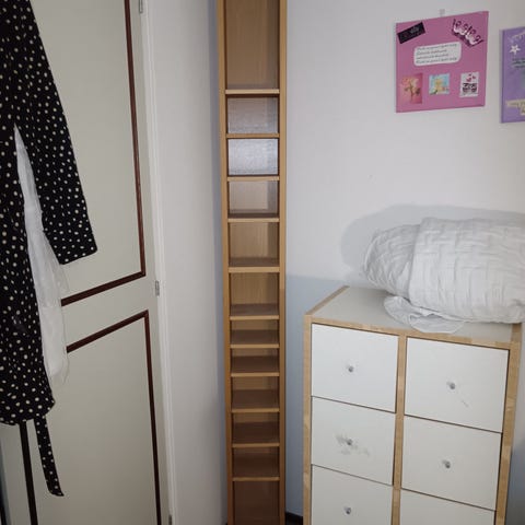 Myydään 2 kpl puisia hyllyjä, toisesta puuttuu joitakin rimoja hyllystä ( ei haittaa käytössä) ja toinen ehjä , korkeus 172 cm , syvyys 33 cm ja leveys 78 cm, vain haku Joensuusta, hinta yhteensä 20e, ( hinnassa huomiotu toisen hyllyn puutteet)