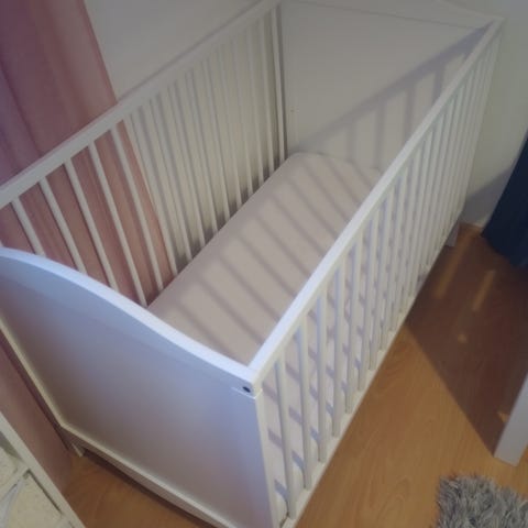 Ostaessa oli pyökinvärinen mutta maalattu valkoiseksi ennen käyttöä. Yhden lapsen käytöstä. Nyt purettuna, säilytetty lämpimässä ja kuivassa. Ei sisällä patjaa.