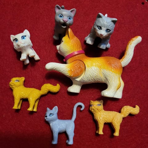 Myydään rakastettu ja monissa leikeissä mukana ollut Barbien Fluff- kissasetti (Mattel 1982). Kissan pää sekä raajat liikkuvat ja tassuissa olevat tarrat tarttuvat raapimispuuhun. Mukana olevat alkuperäisosat: Fluff-kissa, lepopeti, raapimispuu, kantokoppa, ruokapussi. Ei toridiiliä. Nouto (Nokia) tai postitus (postikulut 8,90€).