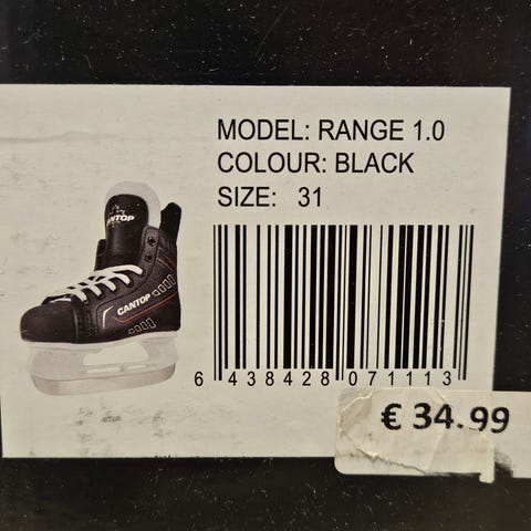 Cantop lasten luistimet, koko 28. Väri valkoinen. Vähän käytetty yhdellä lapsilla. Pehmeä ja lämmin vuori.
