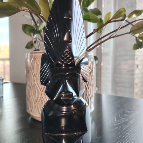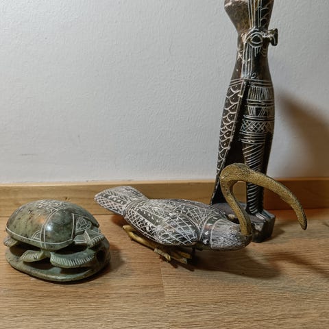 Maya puuveistokset / patsaat Meksikosta. Pienempi 37 cm korkea ja iso 46cm.