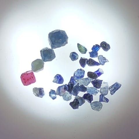 Moissaniitti ja vaaleanpunainen synteettinen safiiri