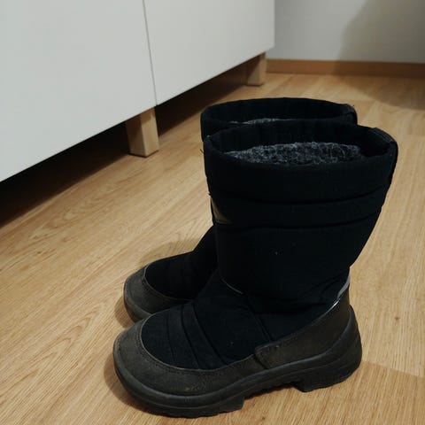Kuoma lasten talvikengät, koko 31, unisex. Kengissä on ehjä lämmin vuori ja kestävät materiaalit. Kengät on suunniteltu tarjoamaan suojaa ja mukavuutta, lumiesteellä lasten jaloille talviaikaan. Kuomat ovat erittäin hyvä kuntoiset vuori ei kulunut kannasta.