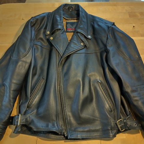 MP-ASU nahkainen moottoripyörätakki. Takissa on verkkovuori sisäpuolella. Takki sopii moottoripyöräilyyn ja tarjoaa suojaa ajon aikana. Koko 58