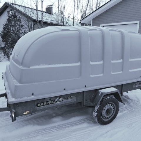 Kuomu ehyt mutta vähän väsynyt. Uudet laakerit renkaissa. Hyvä isompi kärry halvalla!