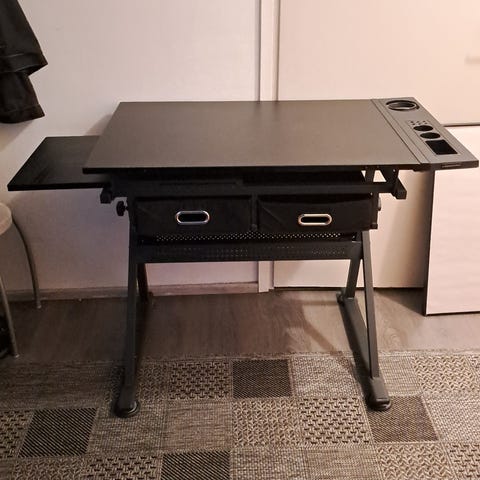 Pintalasi on avattavissa, joten väliin voi asettaa papereita, kalvoja tai erilaisia filttereitä. Pöytä on säädettävissä useisiin työskentelyasentoihin: korkeutta ja kulmaa voi muuttaa aina lähes pystyasentoon asti, jolloin kokonaiskorkeus on noin 153 cm.