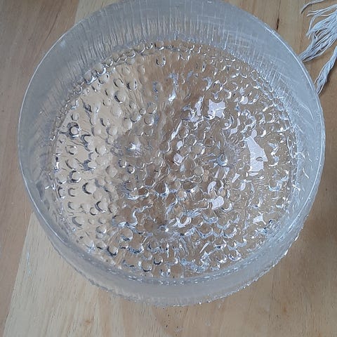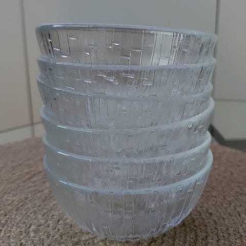 Iso kulho halkaisija 20 cm ja kuusi kpl jälkiruoka kulhoja.