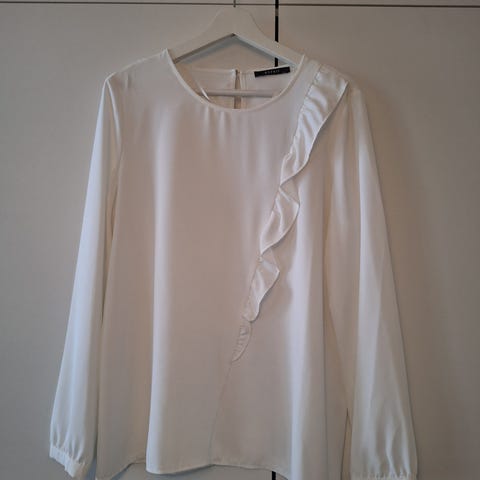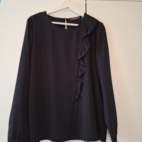 Esprit uudenveroinen paita, turkoosi (ei niin kirkas kuin kuvissa) ohutta laskeutuvaa kangasta, kimallekanttaus kauluksessa. Helma suora, hiat alaosastaan ns.pussittavat. Koko 40.