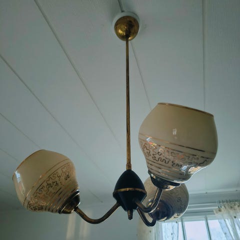 Kaunis vaalenpunainen vanha lamppu lasia.