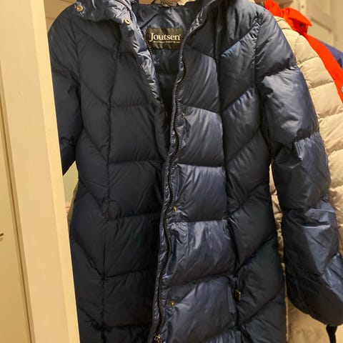 Joutsen-merkkinen lämmin untuvatakki koossa S (ehkä ennemmin vastaa M-kokoa). Erittäin hyväkuntoinen, en löydä moitteita kunnossa.