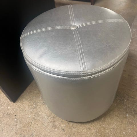 Istuin/säilytysboxi on harmaalla kankaalla päällystetty