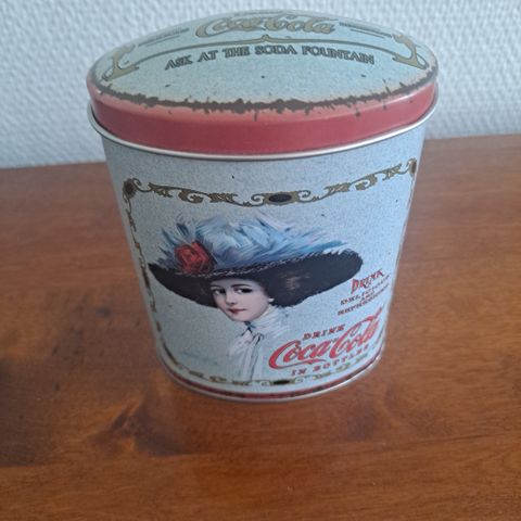 Punainen Coca-Cola -peltirasia, 3e + 6e postit tai nouto.