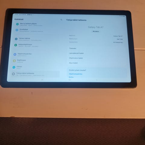 Myydään antiikki 8,7 tuuman tabletti: 1340x800 resoluution LCD-näyttö, 3GB RAM, 32GB kiinteää muistia, 8MP & 2MP taka- ja etukamerat (1080p, 30fps), 5100 mAh akku (uutena ostettaessa), USB-2.0 liitäntä, BT v5.0 & Wi-Fi 802.11, paikka SIM-kortille, Android 14 & One UI 6.1. Laturi ja säilytystasku kaupan päälle.