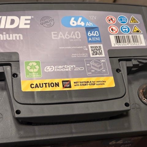 Hyvä kuntoinen lyijyakku. Noin 2-kuukautta sitten ladattu täyteen, nyt lepojännite 12,6v