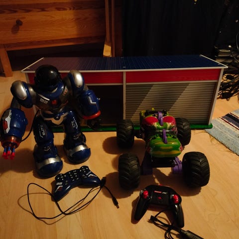 Kauko-ohjattavia autoja. Itsellä ei taito riitä korjaamiseen, mutta asian harrastajalle ehkä helppo juttu. Nouto