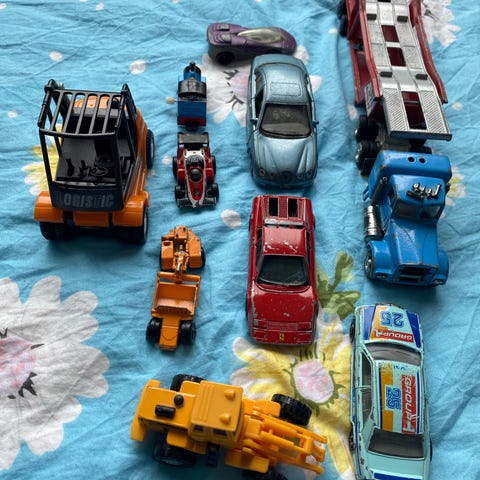 Kauko-ohjattavia autoja. Itsellä ei taito riitä korjaamiseen, mutta asian harrastajalle ehkä helppo juttu. Mitään osia ei puutu. Yhden auton ostajalla meni vissiin puoli tuntia, kun sai auton toimimaan. Oli varmaan asian osaava. Nouto