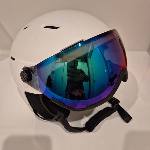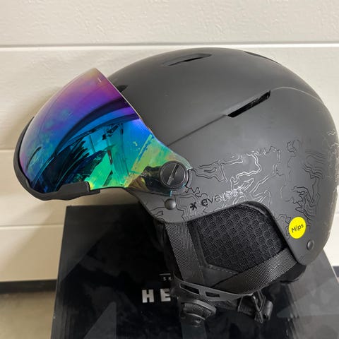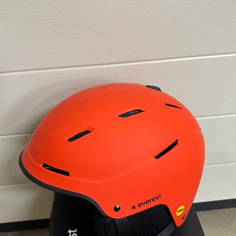 A ski helmet from everest in excellent condition. The built-in glasses give a very wide field of view and are convenient. The helmet has the mips safety system and a comfortable interior. Also adjustable air intakes. Original price 100€