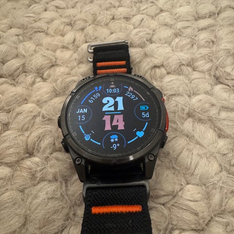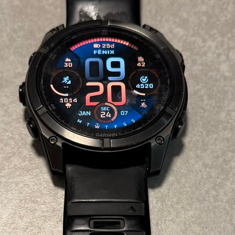 Garmin Fenix 8 51mm älykello, jossa on AMOLED-näyttö. Kunto erinomainen, ei naarmuja ja takuuta jäljellä 2/2027, kuitti löytyy. Kello soveltuu monipuoliseen käyttöön, kuten urheiluun ja arkikäyttöön. Sisältää GPS-toiminnon ja muita älykkäitä ominaisuuksia mm. Garmin Pay.