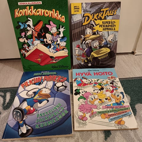 Aku Ankka sarjakuvat kokoelma sisältäen useita eri numeroita ja tarinoita. Sarjakuvat ovat suomenkielisiä ja sisältävät klassisia Aku Ankka -hahmoja. Kokoelma soveltuu sarjakuvien keräilijöille ja lukijoille.