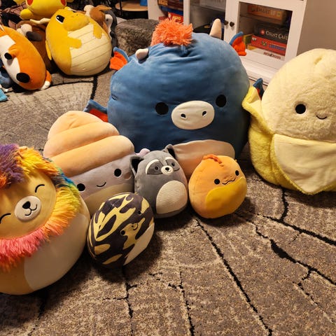 4 ihanan pehmoista, hyväkuntoista pehmolelua. Samaa materiaalia kuin squishmallowspehmot. Korkeus kaikilla n. 38cm.