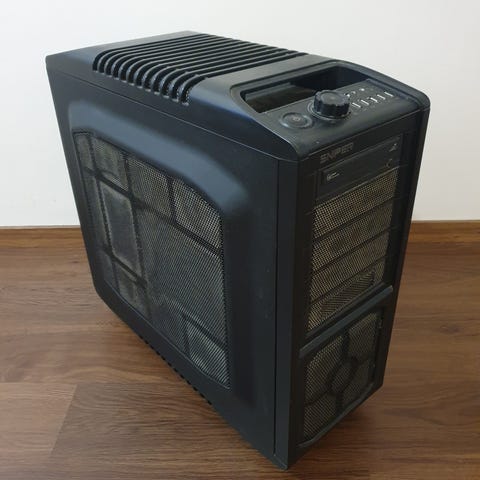 Laadukas rakenne, hyvä ilmankierto ja tyylikäs musta design karkaistulla lasisivupaneelilla.