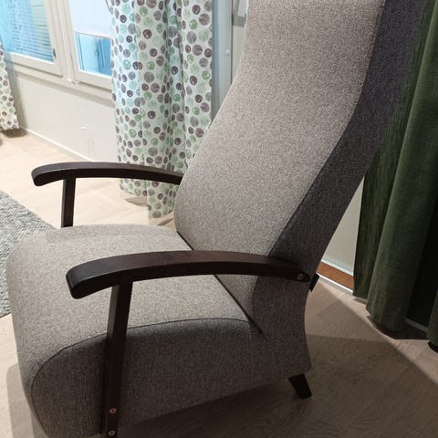 Kunnostusta vaativa otsikon nojatuoli. Ei uutta tuotantoa.