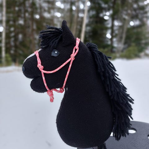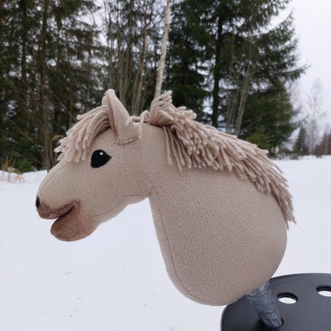 Myydään värikäs keppihevonen. Hevonen on itse tehty ja se toimitetaan täytteineen, ilman keppiä. Mukana tulee kuvassa näkyvä riimu. Hevonen on pienikokoinen ja kevyempi.
