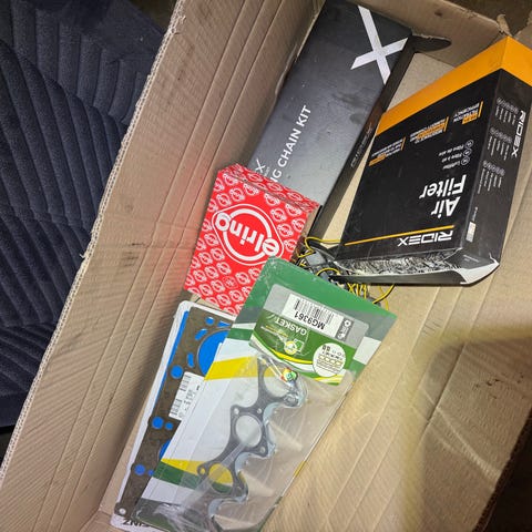 Sytytyspuola, ajovalojen korkeudensäätö moottorit, öljynsuodattimet 2 kpl, takajarrukengät