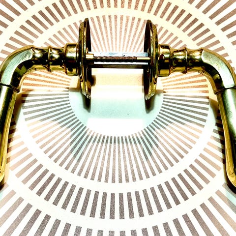 - 2kpl valkoisia Beslag merkin lippa-/piilovetimiä, joissa ruuvit tulevat oven sisäpuolelle.