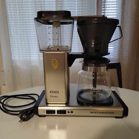 Moccamaster tupla kahvinkeitin. Yksi pannu. Toimii täysin. Tarkasta keittimen iästä ei tietoa, mutta yli 10v vanha. Mieluiten nouto.