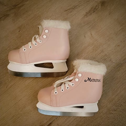 Minnie lasten luistimet, koko 25. Väri vaaleanpunainen. Soveltuvat muun luistelun harrastamiseen.
