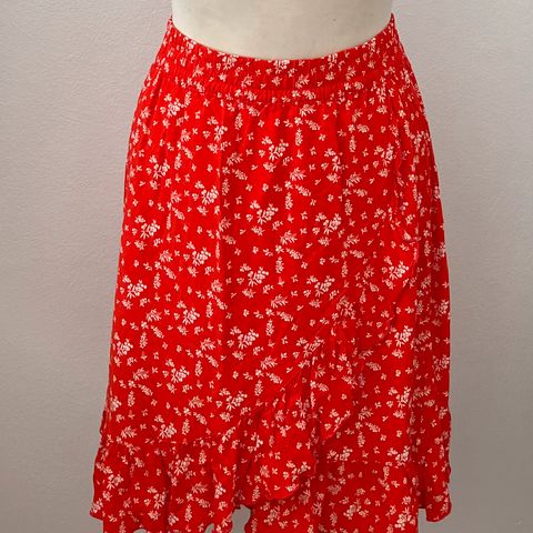 Kaunis, pohje/nilkkapituinen kukkahame joustavalla vyötäröllä. Edessä nauhat koristeena. Hametta ei ole käytetty (laput kiinni). Materiaali 95 % polyesteri ja 5 % elastaani. Musta vuori 95 % viskoosi ja 5 % elastaani.