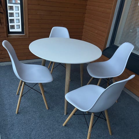 musta ruokapöytä ja 4 tuolia