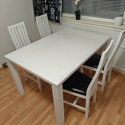 Myydään musta ruokapöytä ja 4 tuolia.