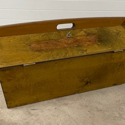 Iso lukittava (Abloy) työkalupakki. Pakki on puusepän käsityötä 9mm vanerista ja puusta. Kestää raskaankin kuorman. Molemmat kannet avattavissa ja lukittavissa, toinen avaimella, toinen sisältä salvalla. Sisällä pientarvikehylly ja kaksi ”taskua”.