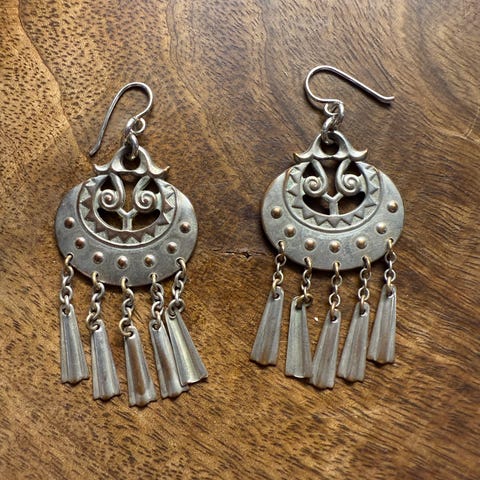 Kalevala Korun isoista pronssisista Kuutar riipuksista modatut korvakorut.