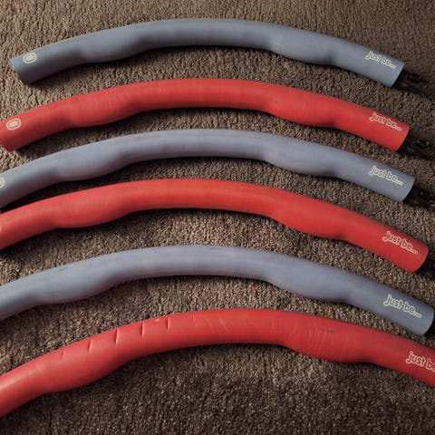 Muutaman kerran käytetty 1,2kg painoinen hulavenne, värinä pinkki-harmaa. Halkaisija 100cm.