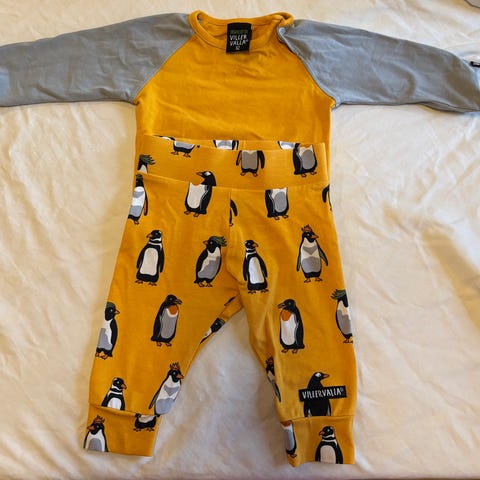 Kuvanmukainen villervallan lammaskuvioinen kietasubody ja housut koossa 62cm.