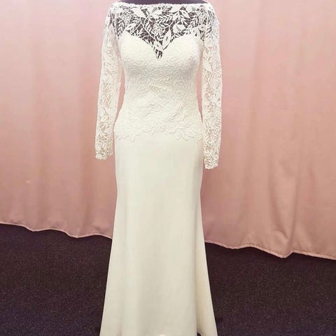 Kaunis ja hyväkuntoinen Bianco Eventon pitsihihainen hääpuku / häämekko tulevalle morsiamelle! Kahdet häät tanssittu, silti erittäin hyvässä kunnossa 🤍