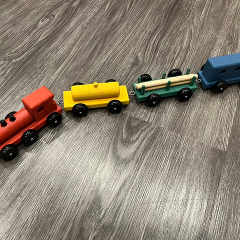 Motonetistä ostettu puinen junarata ja vaunut, kaikki osat sopivat yhteen. Yli 30 rataosaa ja 10 vaunua. Ehjät, mutta paljon leikityt. 20e Ylämylly Honkalampi
